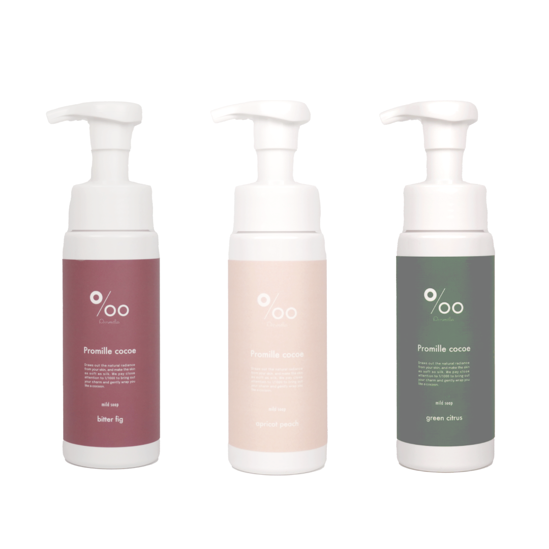『Promille cocoe(プロミルココエ)』は、「原料や香り、デザインに1/1000までこだわる」というプロミルのブランドコンセプトを受け継ぎながら、まっしろな繭のように優しく身体を包み込み、シルクのような柔らかで自然な輝きに満ちたお肌に導くプロダクトを創造するブランドです。