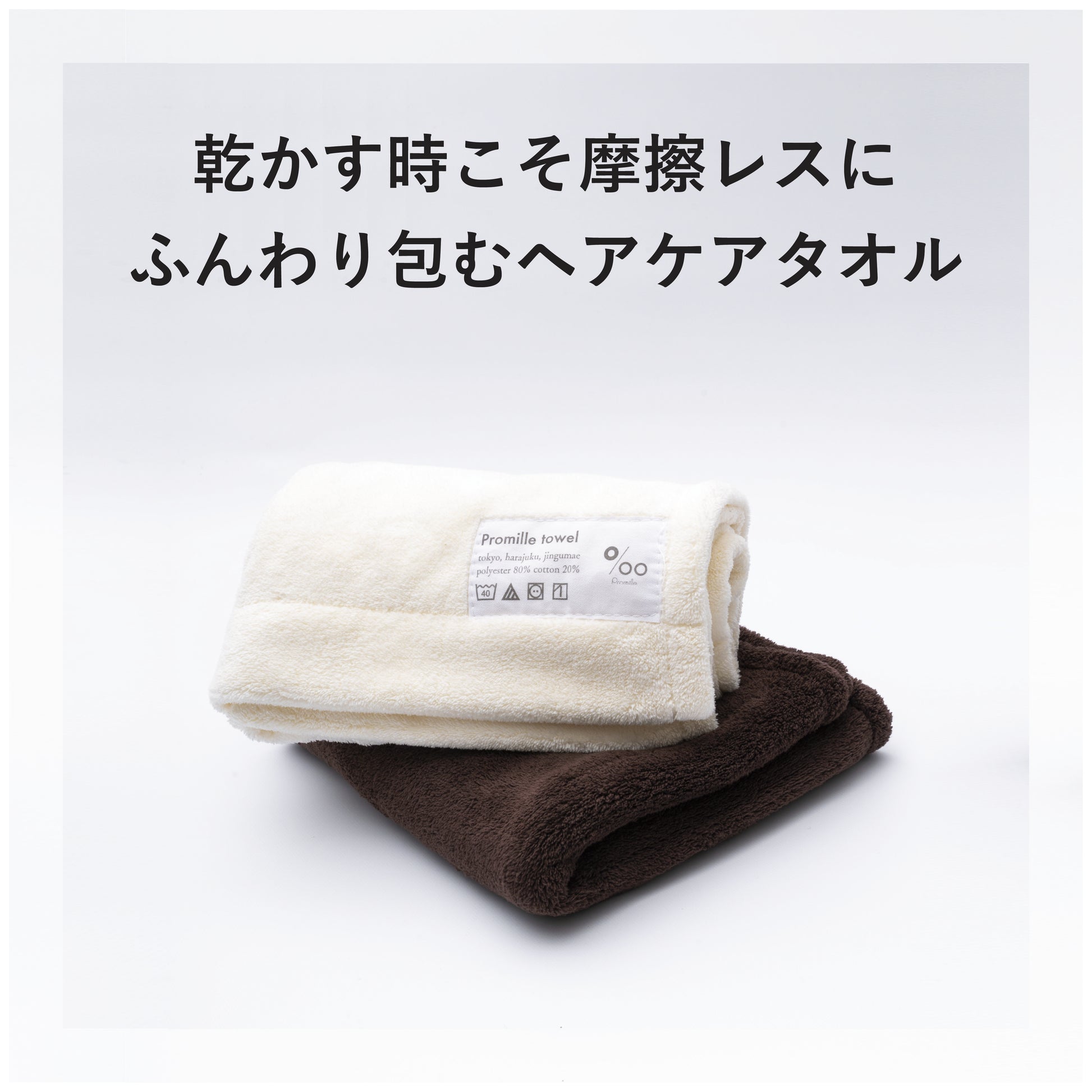 ふんわりとした手触りで吸水性に優れた、ヘアケアに特化したタオル。ドライヤーの使用時間を最小限に抑え、髪に与えるダメージを軽減します。