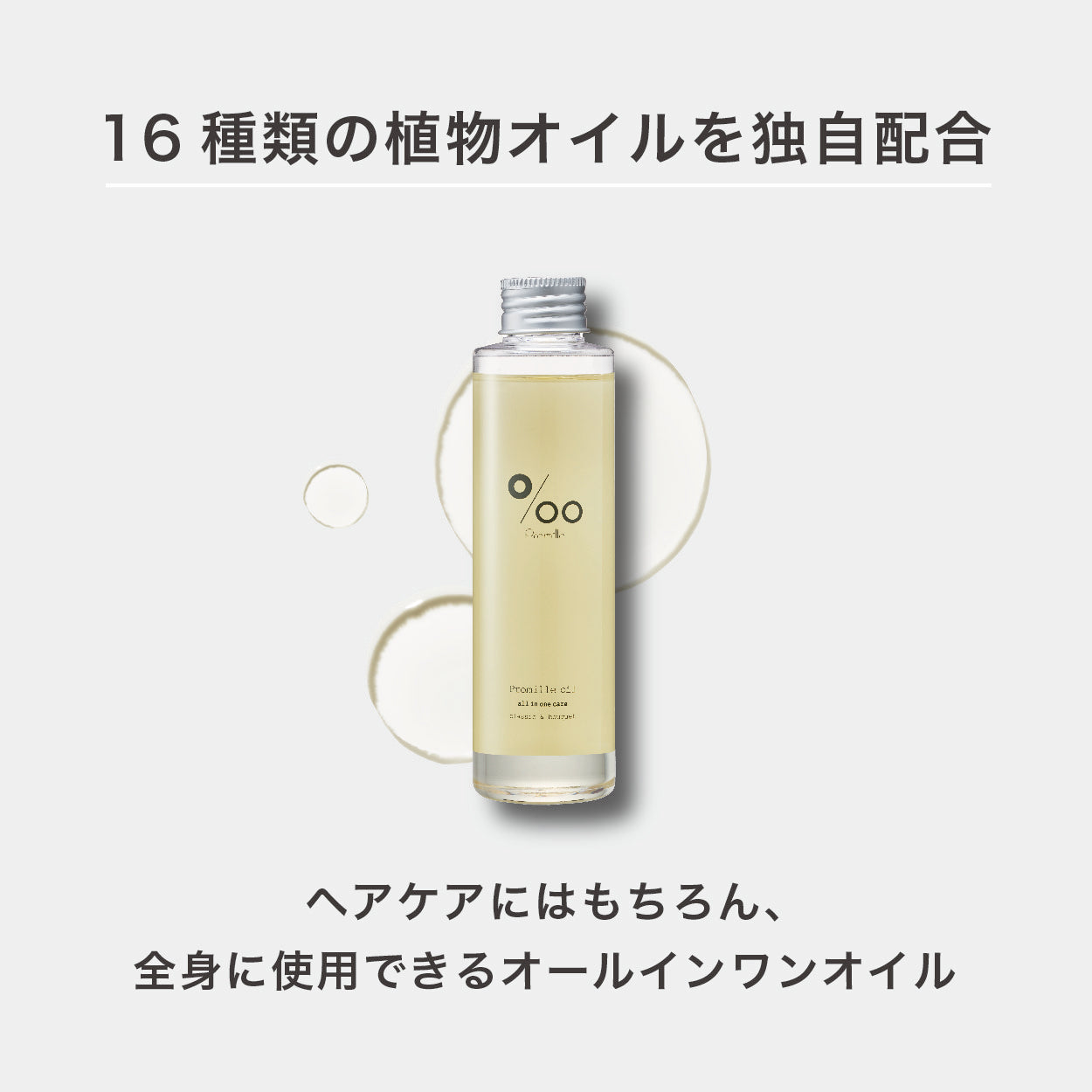スタイリングはもちろんアウトバスケア、さらにはハンド・ボディにもお使い頂けるオールインワンオイルです。