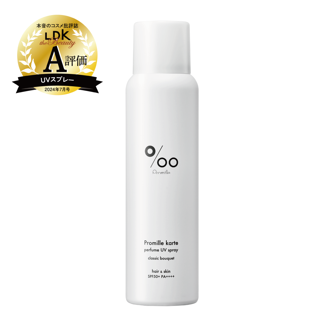 プロミルシリーズに含まれる天然由来のオイル成分*²や、ツルッとした手触りとツヤ感をプラスするシルクパール成分*³を配合することで、キューティクルを整えツヤのある美しい髪をキープします。また、髪だけでなく頭皮とお肌にも使用できる優しい処方になっており、これ1本で髪と頭皮とお肌全てのUVケアが可能です。華やかに香るクラシックブーケの香りが包み込みます。